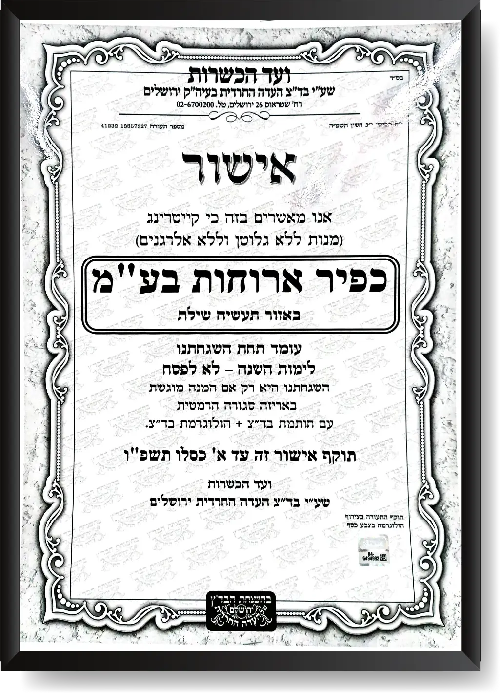 כמובן, כל מוצרינו כשרים בהשגחת הרבנות והעדה החרדית.